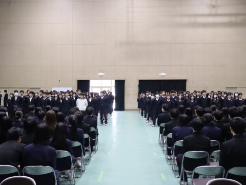 開式は9時30分(卒業生入場 9時25分)となっています。ご参列される保護者のみなさまは、9時00分~9時20分に体育館にご入場ください。会場へは靴のままご入場いただけます。51期生の門出をお祝いしていただければ幸いです。保護者のみなさまのご来場をお待ちしています。