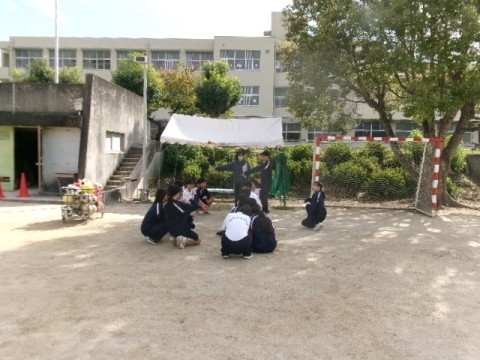 今日から始まった単元ですが、始めは班別で準備運動や練習を行いました。