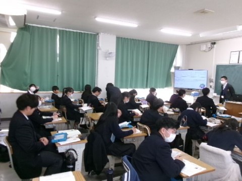 先生の話を聞きしっかりと考えている様子と、グループワークなどを行い自分の意見・考えと友だちの意見・考えを共有している様子です。