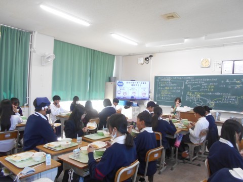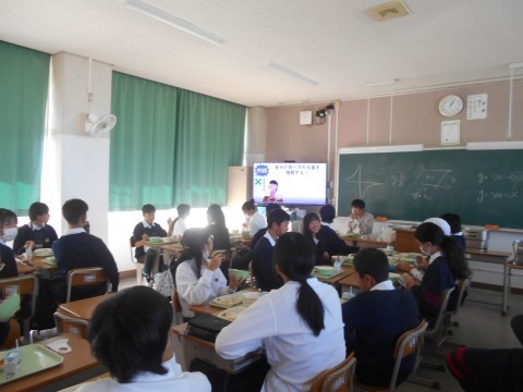 今日は給食時間に食育に関する動画を見ながら給食を食べました。