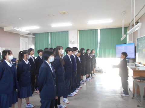 このあとの文化活動発表会のクラス合唱の発表に向けて最後の練習です。