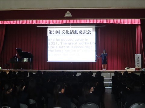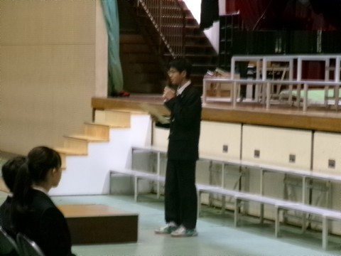 堺市英語暗唱大会とバークレー英語弁論大会に出場した3年生2名の生徒が発表しました。