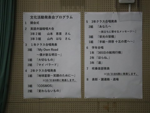 ※2年1組のクラス合唱は10月31日(金)6限に実施します。