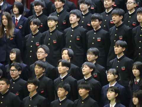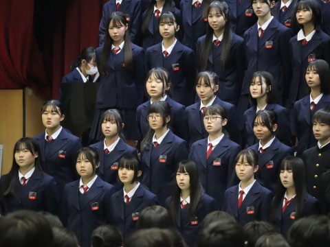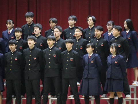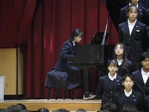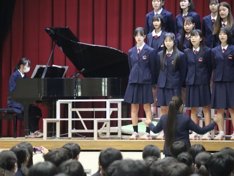 全員で歌いあげるさびの部分は圧巻の歌声が体育館中に響きわたりました。