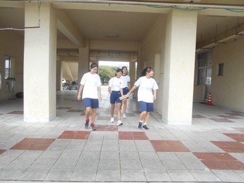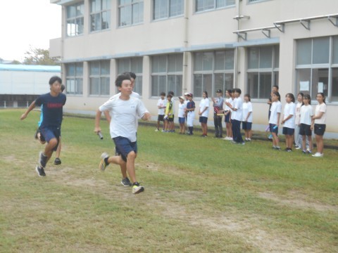 小学6年生と中学生の代表生徒が10月13日に実施される堺市民オリンピックのリレー練習を行いました。