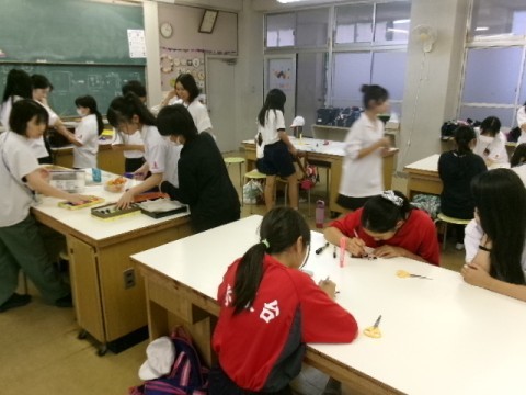 吹奏楽部、家庭科部、卓球部の体験の様子です。