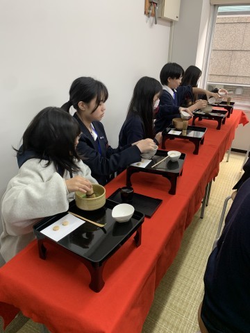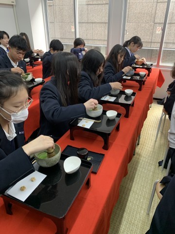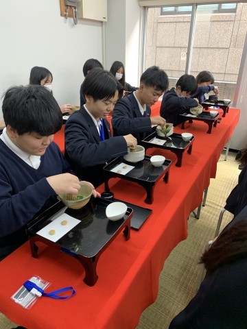 お点前体験中です。