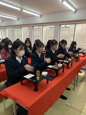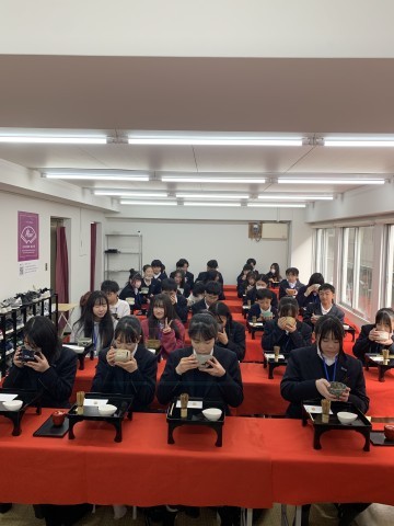 お点前体験、スタートしています。真剣な眼差しで、講師さんのお話しを聞いています。