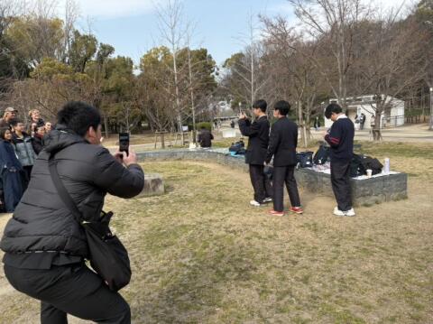 大阪城公園内で昼食をとった後、公園内ではひとときの昼休みを過ごしました。