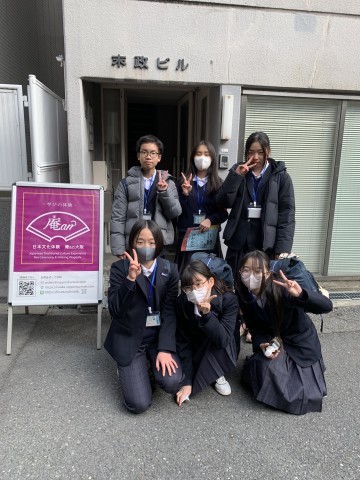 いよいよ、校外学習も終盤を迎えました。最終施設での体験・見学が始まりました。日本文化体験・庵大阪での集合写真です。