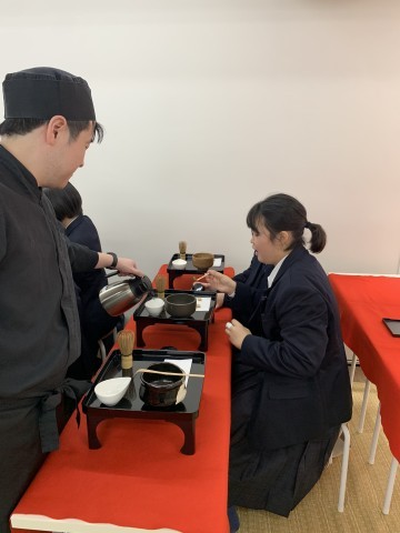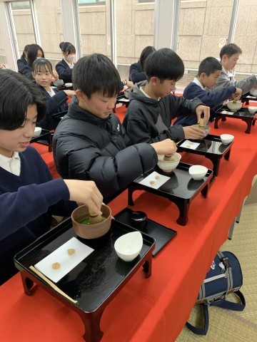 庵 大阪での「お点前体験」、学校では決して学べない作法・所作を教えてもらい、教室では教えてもらえない知識を学ぶことができました。「庵 大阪」全班無事にお点前体験、終了です。