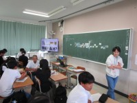1年生は学年全体で、障がい者理解学習の一環で、シッティングバレーボールのお話をききました。