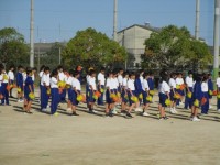 体育大会の応援合戦に向けて,各カラー団ごとの全体練習の様子です。
