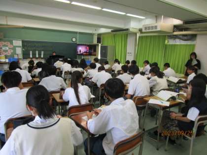 3拍子と4拍子の「エーデルワイス」を比較して聴いて、その違いについてグループで意見交換しています。