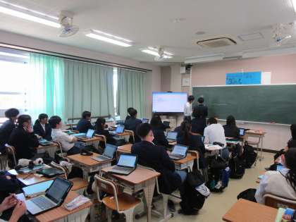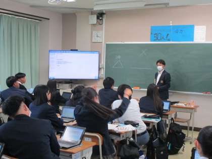 写真は相似な図形の作図を前に出てきて実演しているところです。
