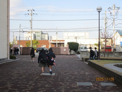 今日は,1年生は防災学習(昨日から交替で実施),2年生はクラスマッチ,3年生は進路説明会(昨日の保護者向け説明会の内容を生徒たちに伝えます。)を予定しています。