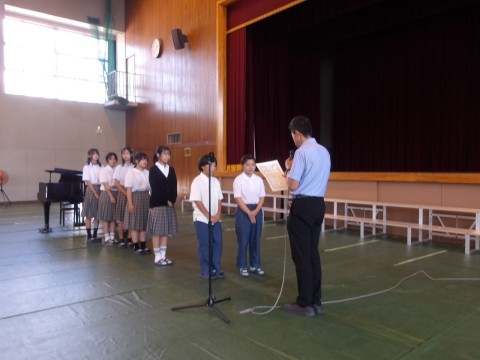 1年生合唱コンクールの表彰式です。