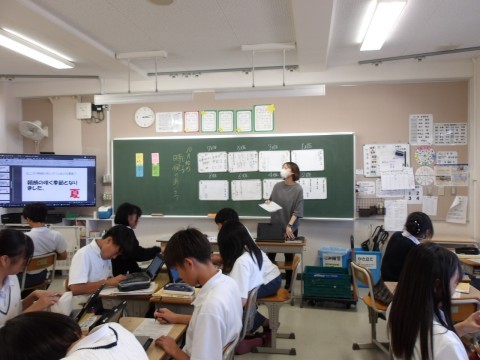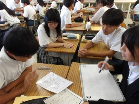 授業の終わりに振り返りで,小テストに取り組んでいました。