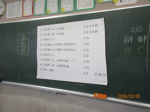 テーマを決めて,ディベートを行う準備をしていました。