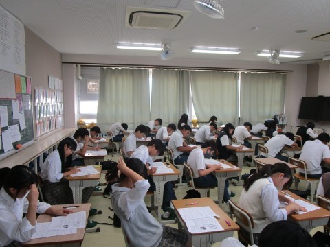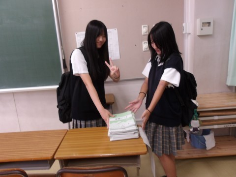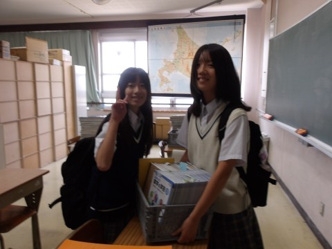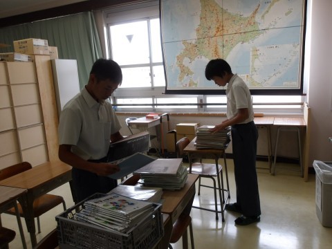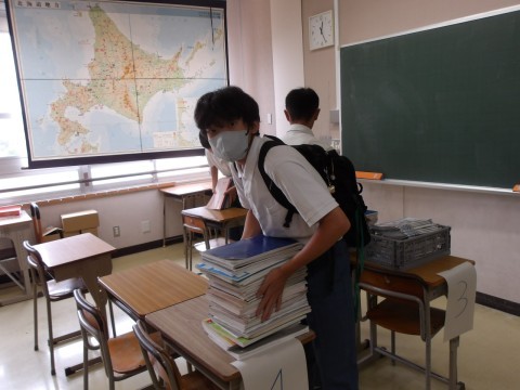 テスト終了後,教科の係の生徒が提出物を運んでくれました。