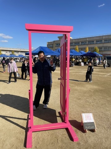 八上フェスタでは、地域にある家具屋さんの協力で、どこでもドアが設置されています。