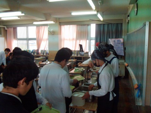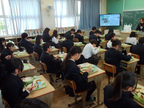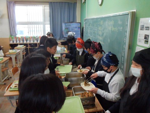 ごはん、牛乳、あじフライ、ミートポテト、春野菜のスープ春野菜スープには、キャベツ、たまねぎ、きぬさや が入っています。きぬさやとは、エンドウの若いサヤのことで、ビタミンC、鉄分、食物繊維などが多く含まれています。