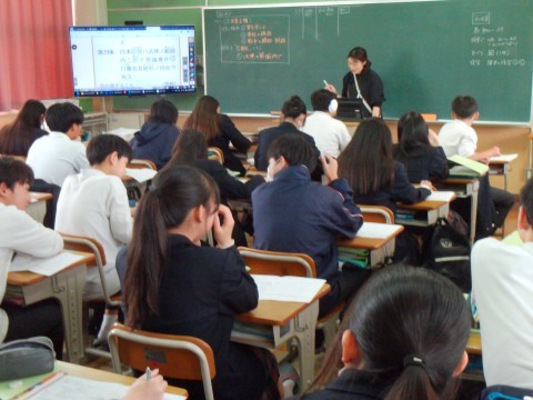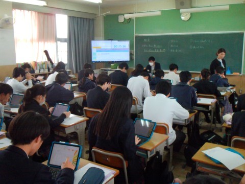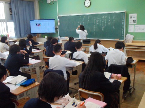 本日の2年生数学の授業では,班の形での授業展開ではなく,一人で問題演習に取り組んでも良いし,数学の得意な人に聞きに行っても良いし,PCで調べても良いという,学び方を自分で選ぶ形で授業を展開しました。