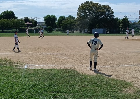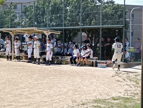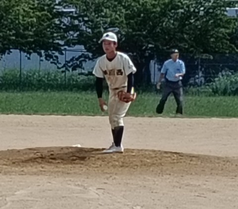 八上中学校、陵西中学校との合同チームで大阪府大会まで勝ち進み、大阪市の中学校と白鷺球場で対戦しました。