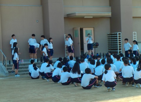 ダンスの練習では、3年生から指示をうけて確認しながら進めています。