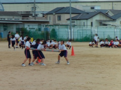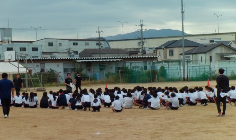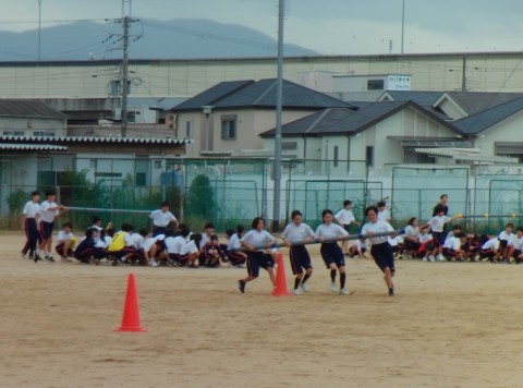 1年生の体育の授業で、体育大会の練習をしています。