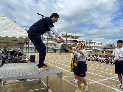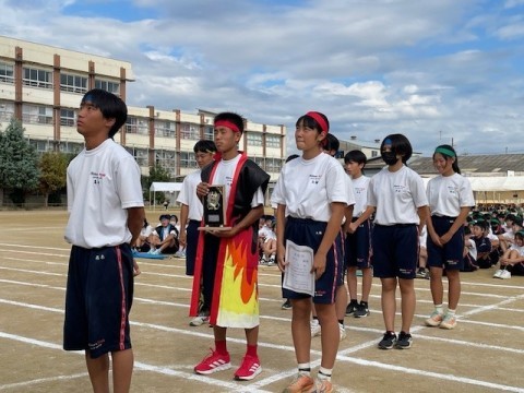 閉会式では,各学年のクラス・カラー団のパネル・応援合戦の表彰を行いました。