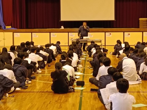 明日の1年生の校外学習事前指導を行いました。4組は学級閉鎖のため、オンライン配信で行いました。