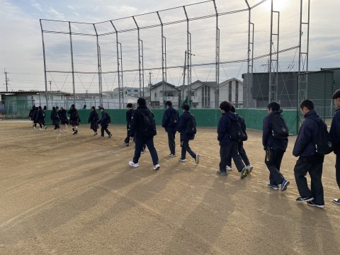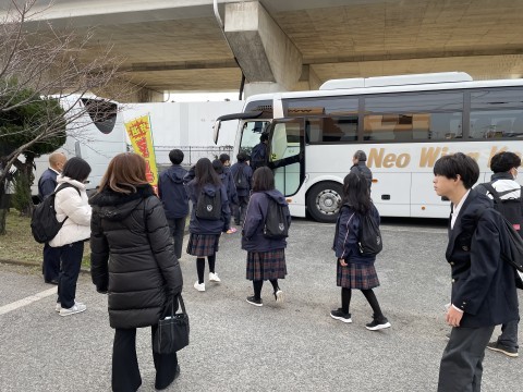 1組3組はバスで利晶の杜へ、2組4組は徒歩で堺市総合防災センターに向かいます。