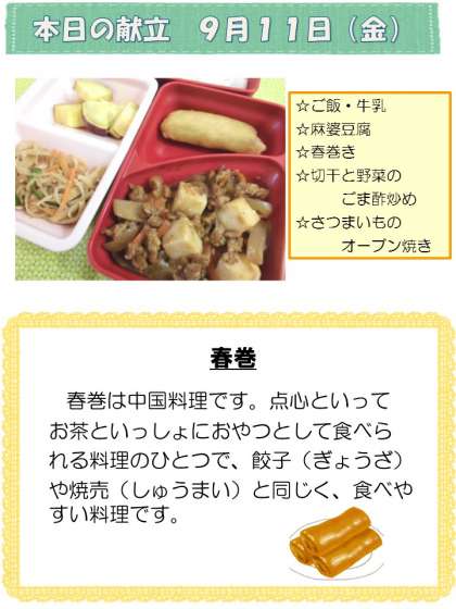 ●本日の給食 〜9月11日(金)〜【生活リズム】