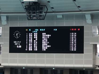 9月5日(土)、丸善インテック大阪プールにて、大阪中学生学年別水泳競技大会が開催され、本校ドリームクラブ水泳部所属、2年生越智さんが、2年生男子100m背泳ぎに出場しました。