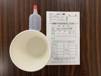 検尿のお知らせの手紙をよく読んで、必ず提出してください。