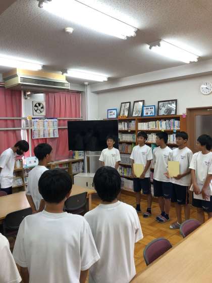 9月12日の大阪秋季大会で残念ながら負けてしまい,3年生が引退となりました。そのため,14日の放課後に最後のミーティングを行いました。3年生の一人ひとりに,サッカー部の思い出や後輩たちへの思いを話してもらいました。またミーティングの最後には,後輩たちからサプライズのプレゼントがあり,とても良い顔になっていました。