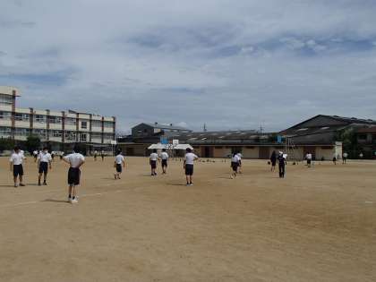 3年生は2回目の学年練習をしました。今回は学年種目の入場と退場をまずやりました。前回走って盛り上がった全員リレーは今回は実際にリレーをすることはやめました。その代わり、クラスごとにバトンの練習や作戦などをしました。