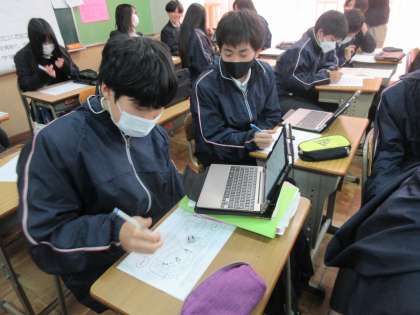タブレットで調べながら作成したり、友達と相談しながら作成していました。