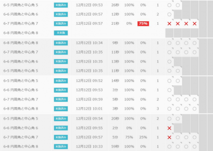 3年生数学科では、『ドリルパーク』を用いて、現在学習している【円周角の定理】の問題を1人1人のタブレットに宿題として配付しています。