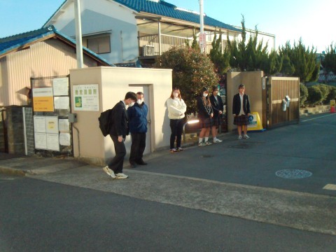 1年生はインフルエンザのため2年生、3年生だけの登校ですが、みんな元気にあいさつできていました。