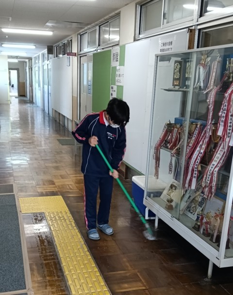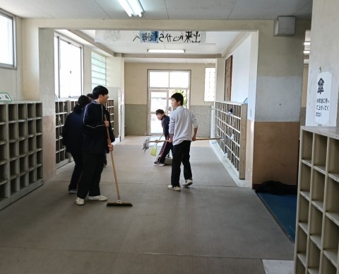 明日の卒業式に備え、2年生と1年生が校内を清掃してくれました。