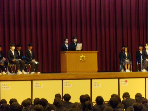 令和8年度の前期生徒会役員を担う候補者の立会演説会を行いました。