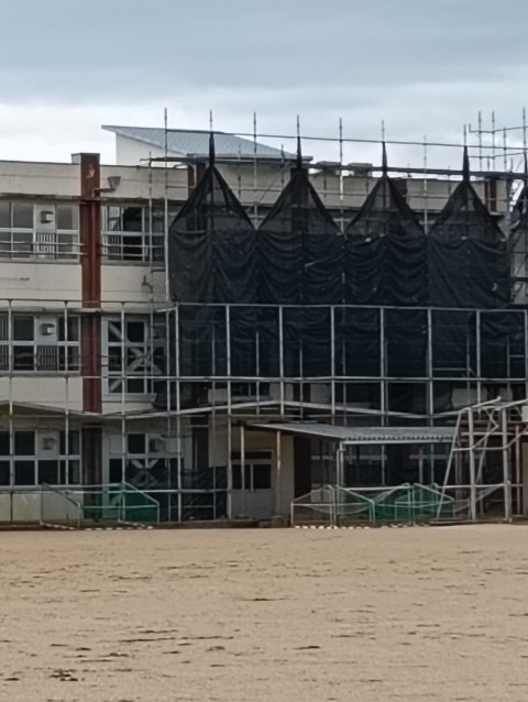 現在、校舎のエレベーター設置工事を実施しています。完成は5月末ごろになる予定です。