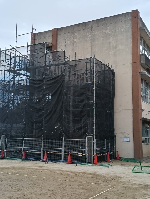 校舎本館の防水工事と南館屋外階段の改修工事を行なっています。