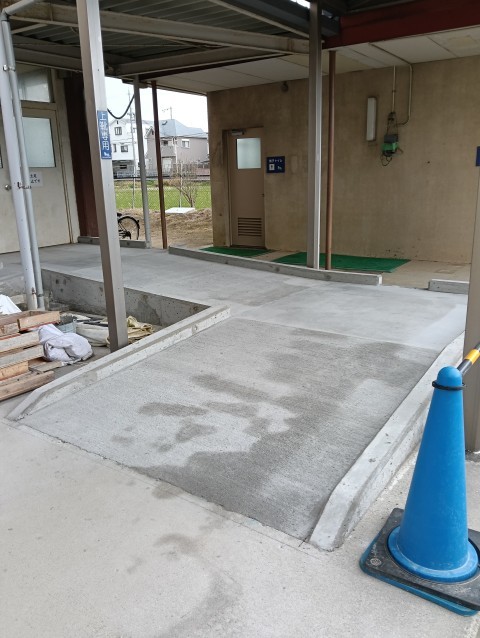 バリアフリー化を目的として、校舎出入口にスロープを設置しました。