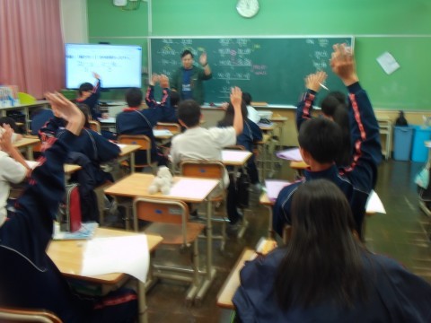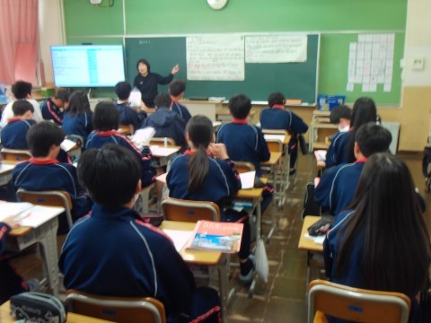 英語の授業では、生徒のみんなが英語であいさつをしてくれました。