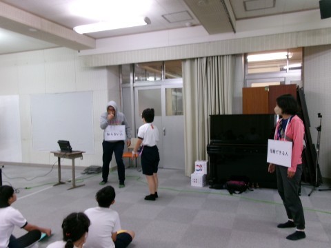 後半には『すてきなきょりをしろう』というテーマで、ふれあいサイコロをしました。サイコロで出た内容を友だちに伝えて、許可するのか断るのかをどちらか選択して自分の気持ちを伝える練習をしました。