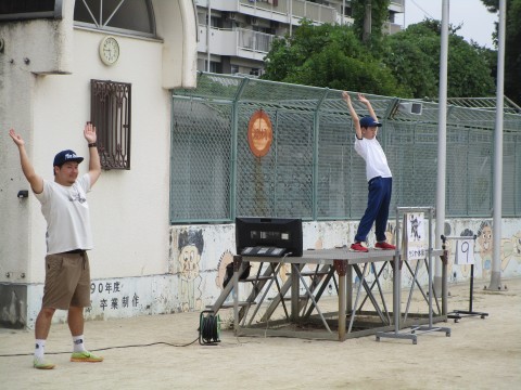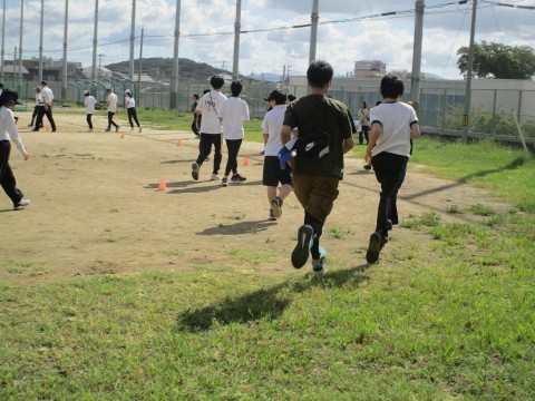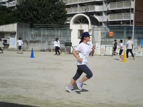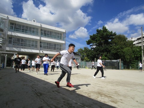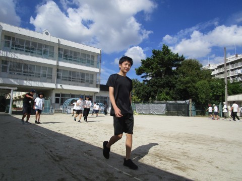 係の生徒によるあいさつや体操の後,いよいよランニングのはじまりです。どの生徒も笑顔が印象的です。