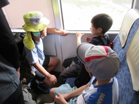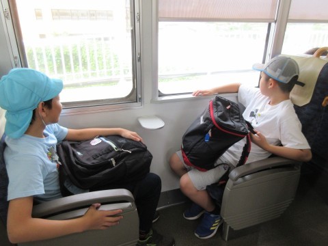 学校から歩いて上野芝駅まで行き、電車に乗りました。春の校外学習より、長い乗車時間でしたが、約束やマナーを守って、電車に乗ることができました。